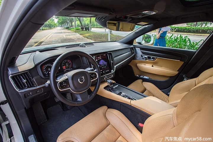 置身车厢内,同样能够感受到熟悉的场景,内饰布局依旧延续S90的豪华布置,保持着沃尔沃一贯的简约与温和调性,并将各类新颖科技、木质、皮革、镀铬金属条等元素融入其中,展现出豪华品牌应有的高雅气度。