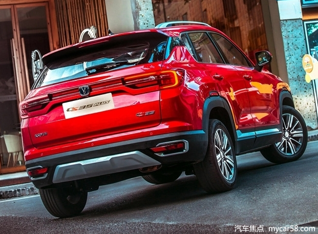 车侧方面,长安cs35 plus采用双腰线折痕设计,BC柱采用涂黑,车顶采用悬浮式设计,配备鲨鱼鳍天线,新车长宽高分别为4335毫米,宽度为1825毫米,高度为1660毫米,轴距为2600毫米。定位为小型SUV。