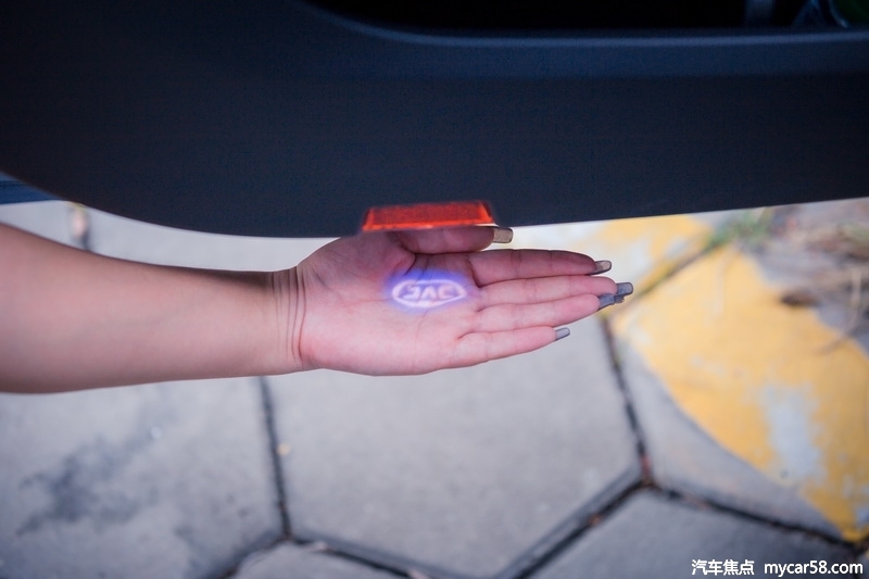 打开车门,江淮iC5带LOGO的蓝色迎宾灯就表现得很细心,Lily直接用手“接”了起来。