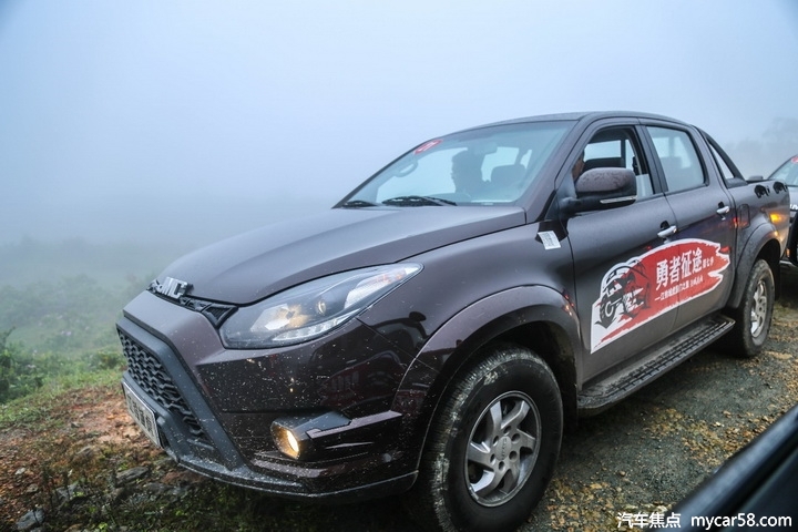 事实上,域虎车队经过路况并不是十分好,碎石路面、烂路、弯路、深山密林等,再加上大雨,沿途雾气四起。但江铃域虎这种带有大梁和整体桥的皮卡车反而显得很从容,就算是连续行驶在坑坑洼洼的路面上,域虎也没有叮叮当当的杂音,显示出极好的装配工艺。在海拔1000米的边境山路,需要接受着恶劣路况与超低能见度的双重考验,即使遇到难以通过的路面,只需打开低速四驱挡,基本上可以应付绝大部分的越野路况。低速高扭、强劲的动力配置以及四驱动力都是全新域虎完成体验的制胜法宝。
