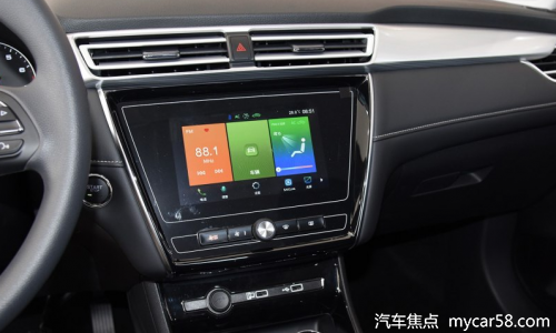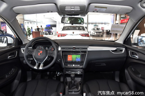 再来看一下荣威i5的内饰,虽然采用了突显质感的黑色系设计,但依然掩盖不了整体简洁的风格,不光方向盘是最基础的塑料材质,座椅也是以织物材质为主,只在边角处有一些皮质搭配,品质感欠佳。另外,从设计方面来看,其美观度也比远景要差一点,例如,中控台是棱角分明的梯形设计,缺少圆润美感,也没有鲜亮的镀铬装饰,略显朴素。