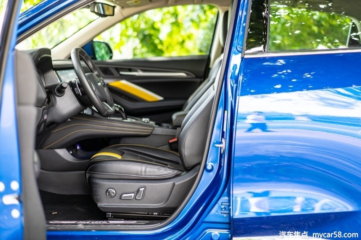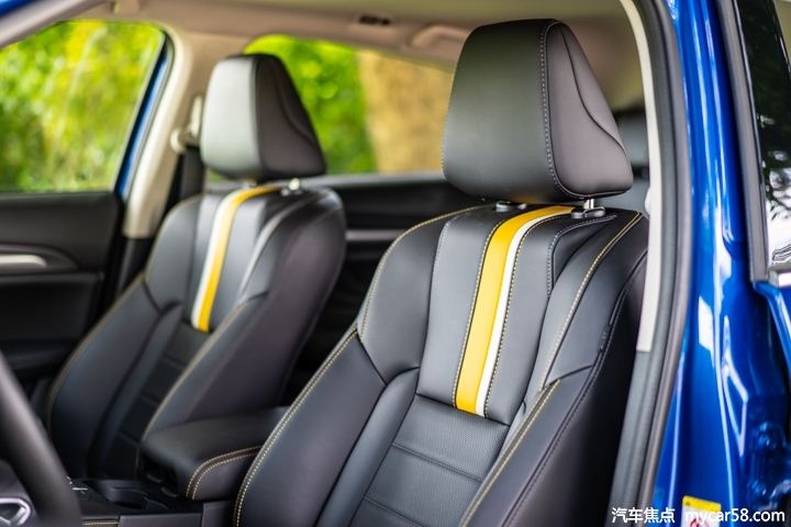 哈弗F7x的前排座椅采用较为运动的设计,夸张的侧翼包裹加上黄黑撞色带来不错的视觉效果,并且前排主副驾驶座椅都配备了电动调节功能,实用性相当不错。
