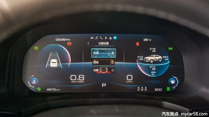 三幅式多功能方向盘造型并不陌生,握感和手感都属于同级领先的水平,并且还带有换挡拨片以及方向盘加热功能,配置到位。而12.3英寸全液晶仪表盘则强化了车厢内的科技感,拥有3种驾驶模式可调节,界面设计、抗眩光能力以及屏幕刷新率表现都不错。