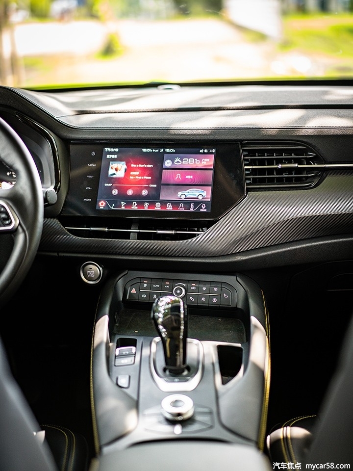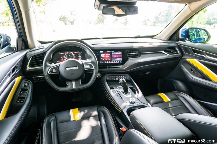 近年来哈弗品牌所采用的内饰设计都不走寻常路线,而在哈弗F7x上同样如此,整个中控台采用大量繁复的走线以及多种材料叠堆营造出很强的层次感。这种不对称的环抱式设计反而能给驾驶者带来更好的视觉效果以及便于操作,活力十足的黄色皮质以及仿碳纤维饰板的加入整个车厢展现出十足的时尚气息。