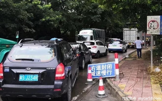 东莞塘厦沙湖大道,位于塘厦镇东南边南北走向,是塘厦通往深圳市观澜镇的交通要道,距梅观高速公路出入口、观澜高尔夫球场仅几步之遥。现在沙湖大道南麒麟岭路口处放置了“右道封闭”的标识牌,现双方向只有一条车道可以走,造成过往车辆拥堵严重,往返的车主朋友可选其它路段绕行。
