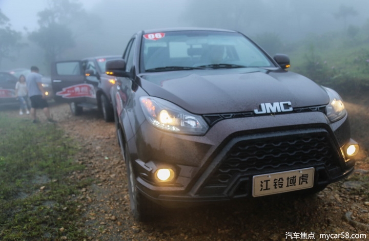 事实上,域虎车队经过路况并不是十分好,碎石路面、烂路、弯路、深山密林等,再加上大雨,沿途雾气四起。但江铃域虎这种带有大梁和整体桥的皮卡车反而显得很从容,就算是连续行驶在坑坑洼洼的路面上,域虎也没有叮叮当当的杂音,显示出极好的装配工艺。在海拔1000米的边境山路,需要接受着恶劣路况与超低能见度的双重考验,即使遇到难以通过的路面,只需打开低速四驱挡,基本上可以应付绝大部分的越野路况。低速高扭、强劲的动力配置以及四驱动力都是全新域虎完成体验的制胜法宝。