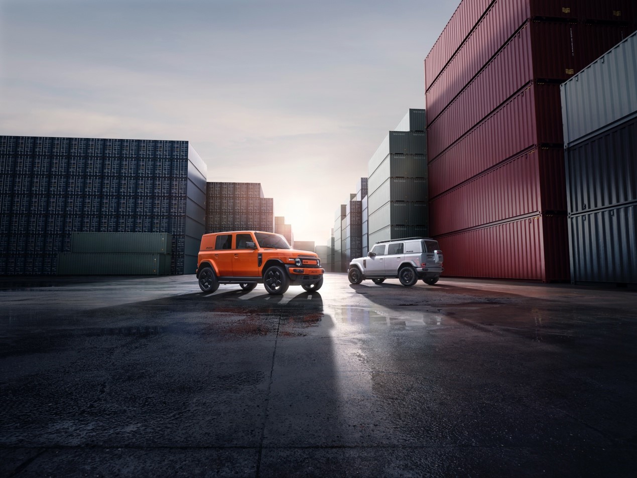 V23不仅在设计上致敬经典,更融合当下新能源设计的趋势,打造出独一无二的视觉体验。V23造型方正硬朗,车身尺寸长4220mm、宽1915mm、高1845mm,接近1:1的高宽比,配合21吋大轮毂,赋予整车超越同级的体量感和视觉冲击力。圆形大灯、固定式侧踏板、C柱盲窗等经典越野元素,与现代科技外露式四角透明毫米波雷达罩、立体悬浮式“小书包”、乐高模块刹车尾灯等设计相结合,使V23既“复古经典”又“科技赛博”。