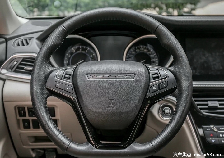 内饰上的实用风格可以说是无处不在,多功能方向盘的设计也体现出稳重的实用性,采用打孔设计,两侧配有多功能按键。在仪表盘的采用了双炮筒设计,这一点值得称赞。
