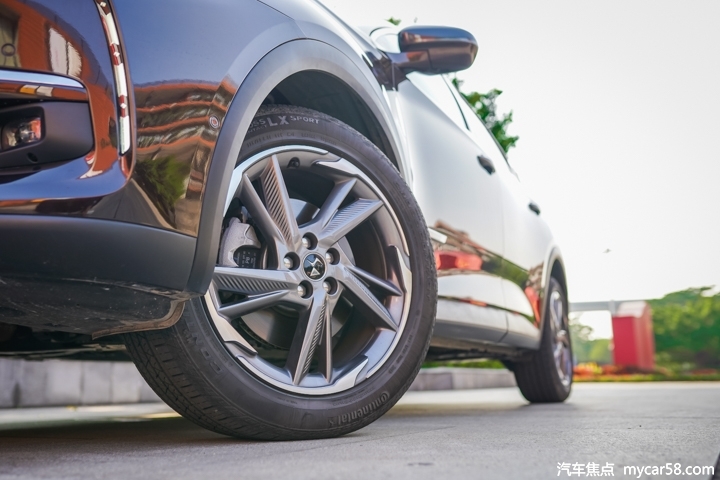 轮圈造型相当独特,复杂的造型加上灰色的喷涂在运动感营造到位。采用马牌ContiCrossContact LX Sport系列轮胎,比较注重公路性能,235/50 R19的尺寸用在一台紧凑型SUV上颇具气势。