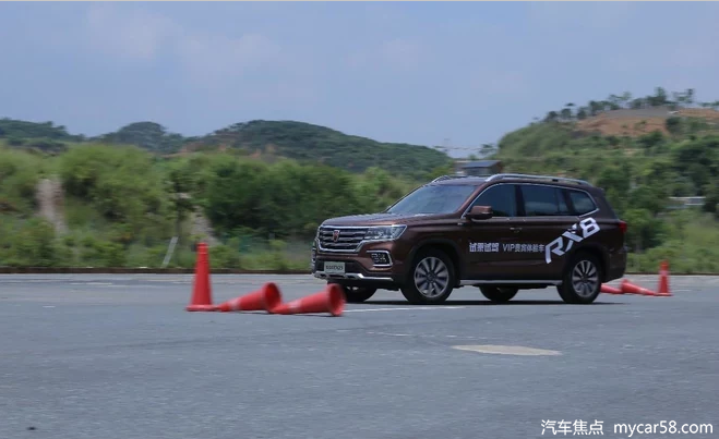 在蛇形绕桩项目中,荣威RX8表现相当不错,作为一台高1840mm的SUV在连续的绕桩过完的情况下姿态依旧从容,悬挂对车身侧倾控制得十分到位。