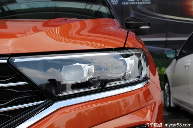 X型前脸富有张力,中网面积很大,跟大灯连为一体,给人感觉十分利落大气。黑色蜂窝造型的进气格栅是最突出显年轻运动风格的地方,近年来大众也将其广泛应用在运动车型上面。