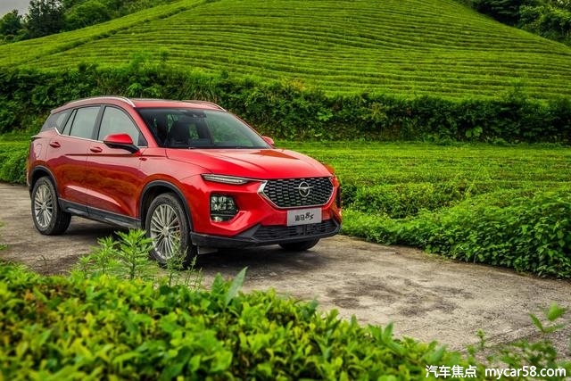 翠绿整齐的茶山中,海马8S"前凸后翘",线条力量感十足。