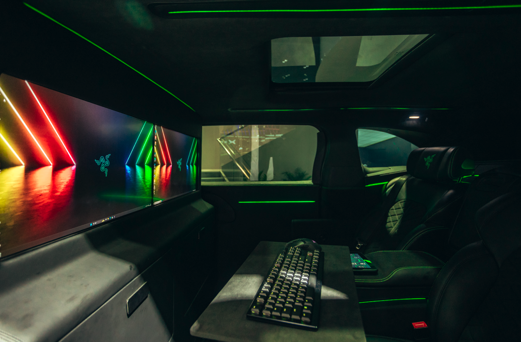 在多方联合潮改共创下,合创V09 RAZER从内到外都拉满了炫酷的电竞氛围感,真正成为了电竞爱好者的“Dream Car”。新车在整车涂装、座舱设计都突出了Razer专属电竞元素,采用雷蛇全家桶旗舰设备,包括超强的灵刃游戏笔记本电脑、雷蛇独创的Chroma RGB幻彩灯光系统、THX空间音效以及多种外设支持,并参照雷蛇电竞椅设计风格,对车内座椅进行了联合改造,配合5G移动互联,让电竞玩家随时随地都能任性开黑,享受到和家里一样的极致电竞体验。