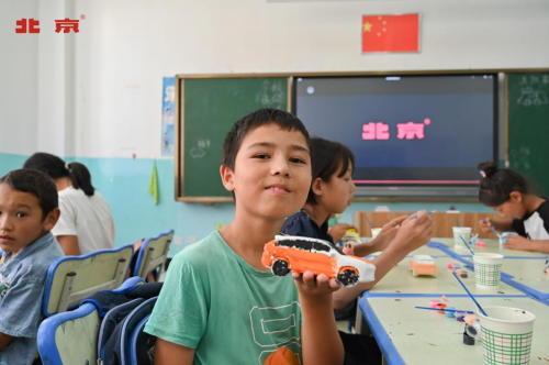新疆阿克陶县毗邻帕米尔高原,山地面积超过96%,数百年来“偏远”“闭塞”“贫瘠”始终是这里的标签,直到几年前易地扶贫搬迁的实施,上万名贫困人口才陆续走出深山,奔向新生活。两位BJ60、BJ40车主及家属不远千里,驾驶爱车亲自抵达阿克陶,与支教团队一起为活动挥洒爱心。在公开课上,他们向孩子们介绍了北京汽车的品牌诞生和发展历程,结合当地特殊的地质与道路状况,对少年儿童在日常出行中的注意事项以及遭遇险情时如何确保人身安全进行详细讲解,共同在美术老师指导下进行石膏车模手工涂鸦,学习体验色彩在设计、应用中的重要性。孩子们在志愿者的讲解下,还迫不及待地体验了北汽车上的一个个“智慧功能”。