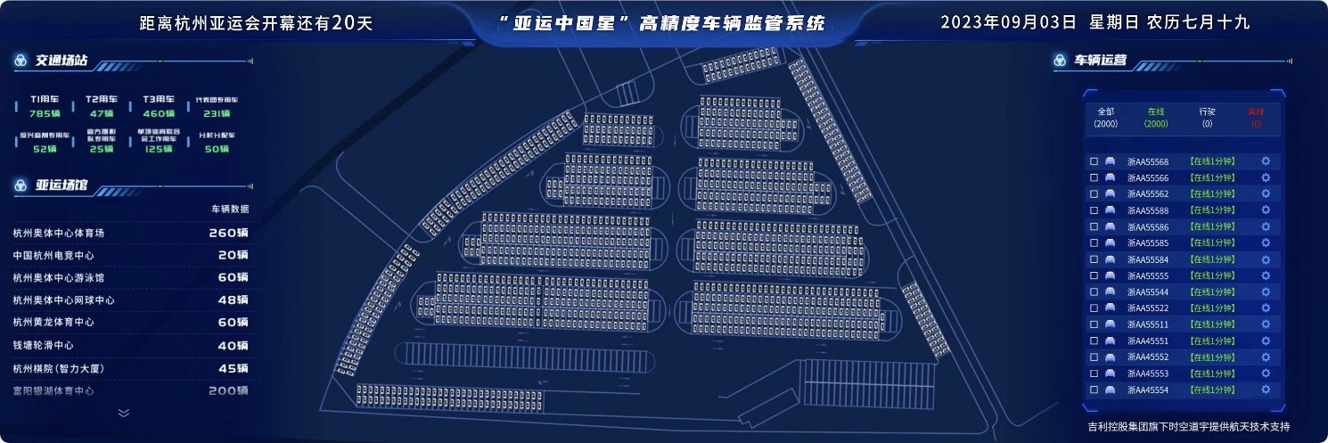 作为杭州亚运会官方合作伙伴,吉利控股集团自亚运进入“杭州时间”后,便开启了 “科技吉利·悦行亚运”的“亚运战略”,从亚运文化推广、亚运火炬传递保障、亚运用车保障、天地一体出行赋能等各个方面,鼎力支持杭州亚运会。在杭州亚运会官方指定用车中,吉利控股旗下商业航天企业时空道宇将为所有亚运会官方指定用车提供星基高精定位服务,让每一辆亚运官方指定用车的位置信息实时、准确地显示在地图上,实现车辆精准管理与调度。此外,时空道宇还将为部分车辆提供应急通信服务,让亚运出行更添保障。吉利星睿智算中心也将为亚运车队提供全程智能化行驶方案,带来永不掉线的全方位护航体验,助力亚运保障车辆智慧安全出行。