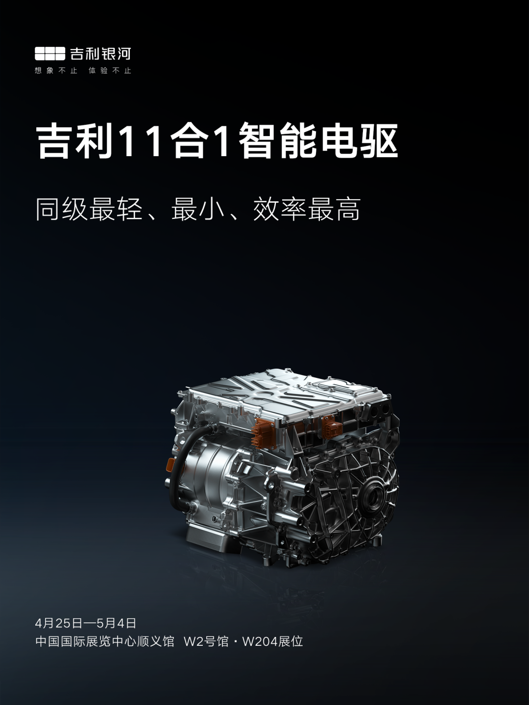 此次北京车展,吉利汽车集团研发的11合1智能电驱也将同步展示,该电驱是同级最轻、最小、效率最高的电驱模块,已获得国内首个“电驱总成5A认证”001号证书。吉利领先的超高性能SiC和高性能轮边电驱技术,也让用户在实际用车场景中,续航更长,操控性更好,静谧性更佳。还有来自极氪的浩瀚-M架构以及吉利银河全新的智能架构,后者是全球首个“硬件、系统、生态、AI”四位一体的智能架构。