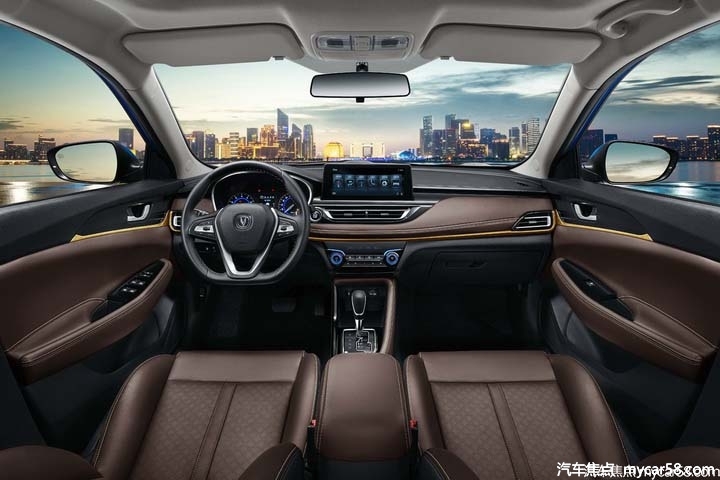 逸动DT的 X形前进气格栅内部由横贯式镀铬条构成,搭配造型锐利的前大灯组和LED日行灯带,外观看起来年轻精致。其长宽高分别为4575*1750*1525/1500mm,轴距为2610mm,中规中矩。在配置上逸动DT相当大方,比起宝骏310W多了ESP、上坡辅助还有电动天窗,甚至连中控屏也是10.25英寸的大屏幕,这样的车给刚刚进入社会的年轻人用个几年也不会落伍。(下图为自动挡车型内饰)