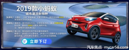 现在起,用户登录苏宁汽车,即可享受2019款小蚂蚁友享礼、易享礼和畅享礼三大购车政策,保证您购车轻松,养车无忧。