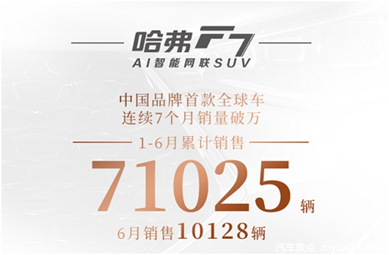 随着6月销量的公布,哈弗F7进入公众视野已过半载,面对市场的严苛检验,哈弗F7交出了让消费者满意的答卷。截至今年6月底,累计销量已达88134台,势能强劲。我们有理由相信,哈弗F7大单品突破10万大关的辉煌业绩已是近在咫尺。