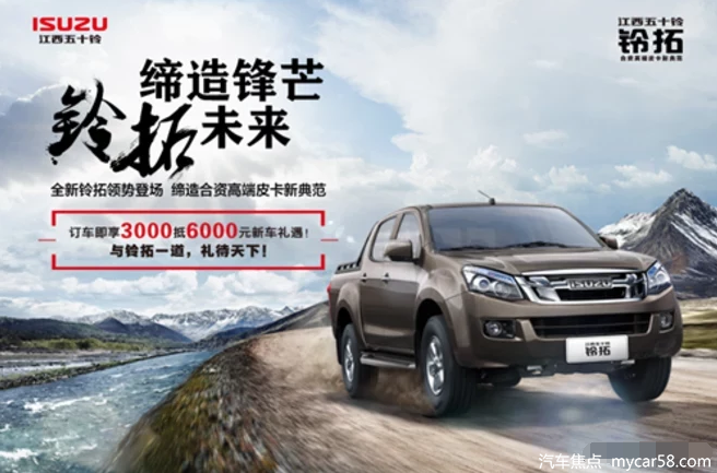铃拓直接面向追求高端舒适性能兼顾性价比的新生代消费者,现在购买全新铃拓,即可享受全系3000抵6000的诚意政策,高端合资皮卡缔造的高端体验尽在眼前!