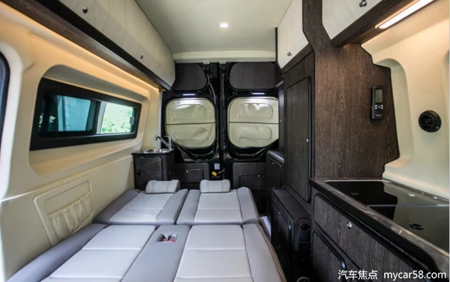 实木地板、电控后排座椅(挪移放倒是一张1.8m的床)、车内洗手池、厕所、以及车载冰箱和车载电磁炉这些配置,更为惊喜的是升顶车盖,遐想下在大草原上可以透过车顶眺望远方的风景,欣赏那漫天的星星,这种感觉谁不喜欢。当然了看好了车认定要买这样的房车之后。就到了关键一环谈钱。