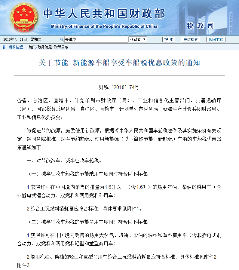 汽车咖啡馆获悉,7月31日,财政部发布公告,称将对节能汽车,减半征收车船税,同时对新能源车船,免征车船税。根据公告内容,节能汽车指的是在中国境内销售的排量为1.6升以下(含1.6升)的燃用汽油、柴油的乘用车;而免征车船税的新能源汽车是指纯电动商用车、插电式(含增程式)混合动力汽车、燃料电池商用车。