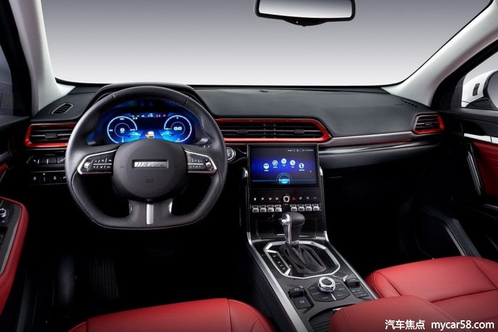 内饰部分则延续了哈弗家族式设计,采用平底式多用能方向盘,搭配全液晶仪表以及大尺寸屏幕中控屏幕,实体按键则统一设计在屏幕下方。
