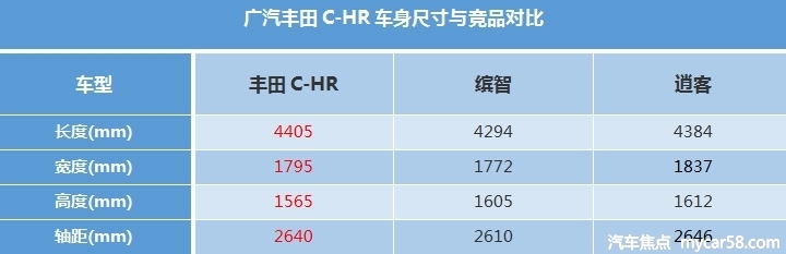 空间大小不能凭感觉下定论,举个例子:9.7英寸的ipad在小朋友手里是巨无霸,但在姚明手里那就和玩具差不多了。C-HR车身尺寸为4405/1795/1565mm,轴距为2640mm,和本田缤智、别克昂科拉和现代ix25等几个对手相比有着明显的优势,要知道CR-V的轴距也仅有2660mm。