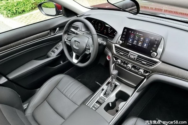 内饰的设计没有像外观那么运动,那么让人热血沸腾,黑色基调搭配上深色木纹,显得更加的沉稳内敛,不过它还推出了红色内饰供选择,更能增强运动感。在一起配置上,雅阁采用了半液晶仪表盘,中控台上还搭载了8英寸多媒体触摸屏。