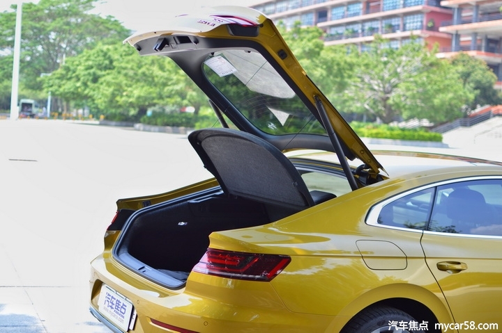 掀背轿跑的设计并不是虚有其表,超大的后尾箱门开合程度让一众对手感到汗颜,而且它同样支持电动感应开闭。