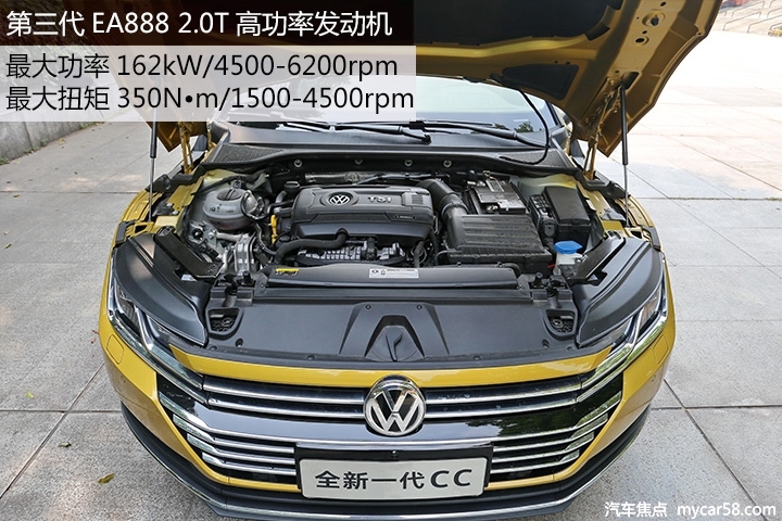 全新CC采用大家熟悉的第三代EA888的2.0TSI发动机,高功率车型最大功率220匹马力,峰值扭矩350牛·米,低功率车型则为186匹马力,匹配DSG 7速湿式双离合变速箱。对于一台大众轿跑车型,它除了要足够舒适也要能运动撒野,全新CC拥有的第二代DCC自适应悬架足以应付不同的使用需求。