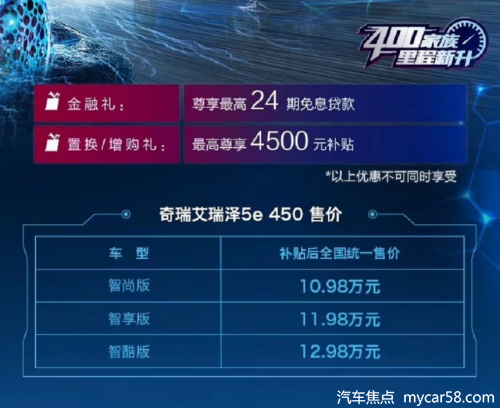 入手高品质纯电家轿 主推艾瑞泽5e 450智享版 性价比取胜