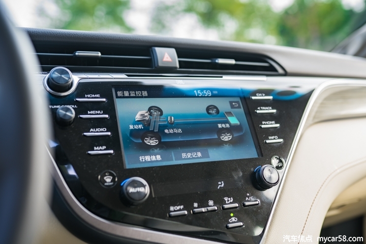 在混合动力系统的加持下,大多数情况下车辆都是由电机驱动形式,并且还能够通过档杆一侧的按键转换成纯电模式,续航里程大概为2-3km。值得一提的是新一代凯美瑞混动电动机与发动机之间的切换变得更为平顺,如果不细心感受你甚至不知道发动机什么时候就启动了,进步非常明显,电机介入让车辆起步的时候有着很不错的提速感。