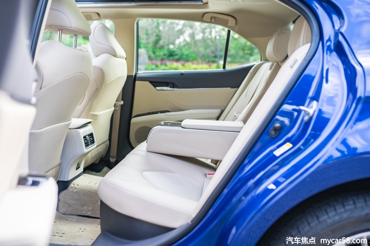 值得一提的是这一代凯美瑞混动车型由于电池组放置到后排座椅下方,所以对于后备箱的空间侵占减到最少,在享受低油耗的同时还能给你一个完整的后备箱空间。不过由于后排靠背电动调节的缘故,所以后排座椅并不支持放倒,好在中间的开口依然能带来不错的扩展性。