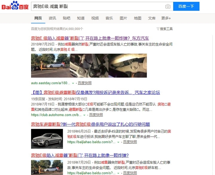 事实上,早在去年7月份,奔驰E级减震器“断裂门”就在各大汽车网站论坛频频曝光,中国汽车质量网早前已经发文开始征集质量投诉。