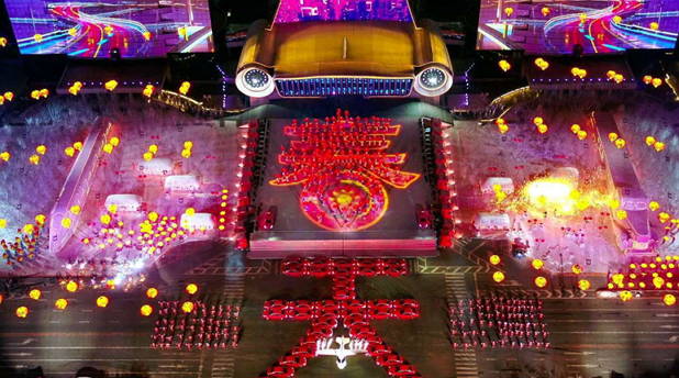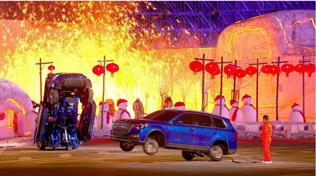 除了红包互动环节,中国一汽总部厂区作为2019年春晚长春分会场亮相,成为首家登上春晚舞台的企业。在长春分会场现场,各种代表东北城市的元素集中展示,晶莹的冰雪、大红的灯笼、热闹的秧歌、奔驰的高铁、飞溅的钢花……当然,最吸引眼球的则是一汽红旗全系车型的精彩亮相,用最“红旗”的舞台语言,最摄人心魄的车技表演,震撼了全世界的华人观众。主舞台背景由红旗L5车头的竖条前隔栅为主视觉构建,红旗品牌全系产品组成特技表演车队,演绎出了全球华人的汽车情怀。当舞台上巨大的红旗L5冲出的一霎那,整个舞台一起点亮,向全球华人拜年,而红旗HS5一飞冲天的表演可以说创造了新车亮相的又一创意高峰,给观众留下了深刻的印象。