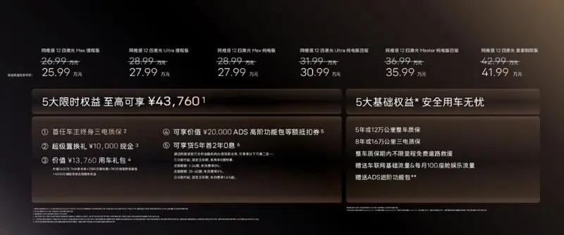 阿维塔12四激光版正式上市 权益后25.99万元起售