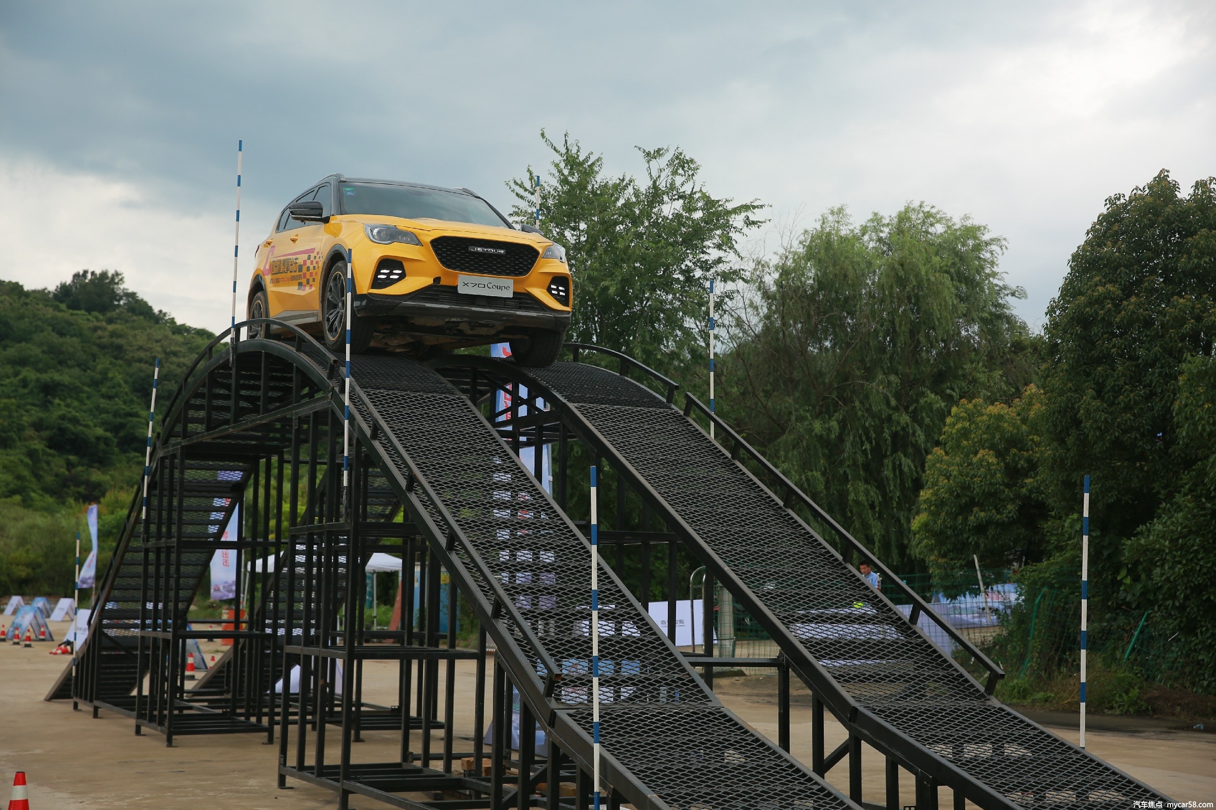 通过轮胎路段和跷跷板项目,前麦弗逊式独立悬架+后多连杆独立悬架与扎实的底盘完美匹配,悬架的稳定性及支撑性充分保障了捷途X70Coupe的通过性、驾控性和乘坐的舒适性,给予驾驶者更多信心。过交叉轴时,车身和底盘受到扭转力的拉扯,极度考验车身刚性和安全性;驼峰桥试驾中,上坡辅助功能很好地防止上坡溜车,为驾乘者提供动感、舒适且平顺的驾乘感受。
