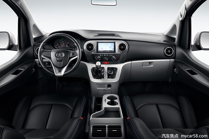 瑞风M3宜家版内饰设计采用环抱式布局,增强了流畅的空间感。中控台大面积使用软包裹材质,档次感显著提升,7寸电阻式MP5触摸屏,使其科技感瞬间提升,上深下浅的配色方案也使中控台看起来非常温馨。三幅式方向盘握感饱满,设计上也非常中规中矩!空调出风口被银色镀铬装饰环抱,座椅采用黑灰配色方案,简约中透着时尚大气。