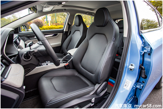 江淮iC5配备一套一体式头枕的运动造型座椅,激进的造型配合夸张的侧翼能够带来不错的包裹感,配备有电动前后调节功能,方便驾驶员坐姿微调。