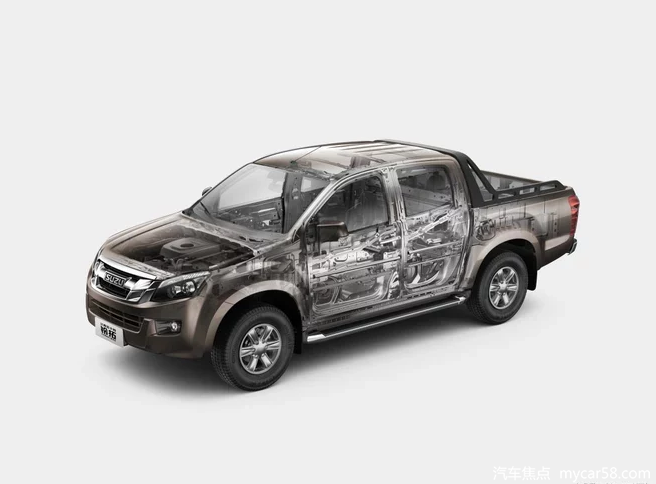 传承了D-MAX同平台刚性底盘,带来无与伦比的驾驶乐趣与稳定性。分时四驱系统以及伊顿差速器的配备,在路面条件较差时,依然可从容应对,轻松脱困。