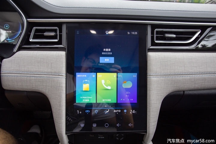 这种不同于汽油车循序渐进的暴力加速体验相当刺激,当然如果觉得标准模式太过激进的话,城市通行其实切换至节能模式会更加讨喜。这时候电门踏板的响应就很有德系车的感觉,头段不会给你太多反应,而把电门继续深踩又会给出温和的动力输出响应你的操作,挺讨喜的。