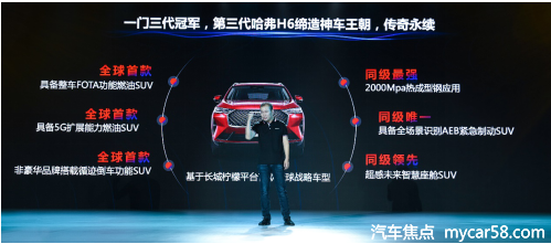 活动现场,长城汽车股份有限公司哈弗品牌总经理王印明对第三代哈弗H6全球领先产品力进行了解读,他概括为三个点。