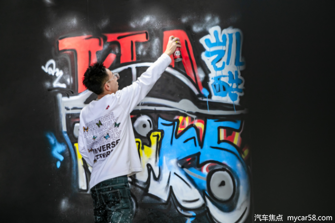 惯于运用色彩表达自己的田严直言凯酷首先吸引自己的,就是它动感十足的车身色彩,“这个颜色特别酷!”,他表示这款钻海蓝的色彩抓人眼球又能引发思考,在自己平时的街头涂鸦的色彩运用中,也常常会借用夺目的蓝色来表达自己年轻又先锋的创意和态度。