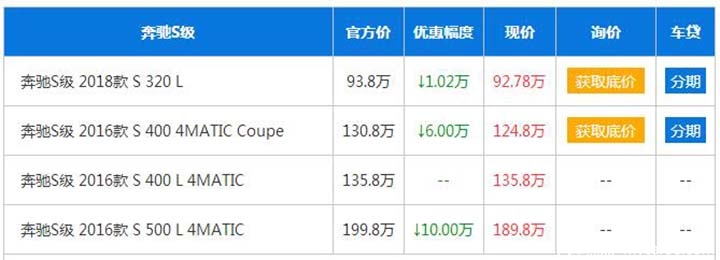 作为中期改款车型,新款奔驰S级并没有对外观进行大刀阔斧的变化,主要在设计细节上进行了调整,总体依旧那么雍容华贵。此外,新款车型还搭载了MULTIBEAM LED大灯系统,其远程几何多光束LED大灯能根据当前交通状况来快速精确调节大灯光束,在提高照明效率的同时能有效避免对其他驾驶者造成影响。近日编辑从南京中升之星奔驰了解到奔驰S级优惠高达10万元,现车充足。具体优惠如下: