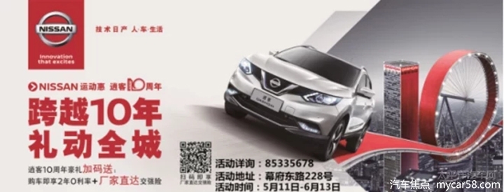 逍客周年礼:购逍客既享1年交强险或者1万元两年免息贷款额度