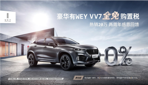 迎来了两周年生日的WEY品牌,为了回馈消费者,WEY VV7全系车型推出免购置税活动,最高可享约16000元优惠支持。如此优惠的政策,让更多的消费者能够以更少的价格拥抱豪华,心动不如现在就行动,前往当地经销商处咨询、订购吧!