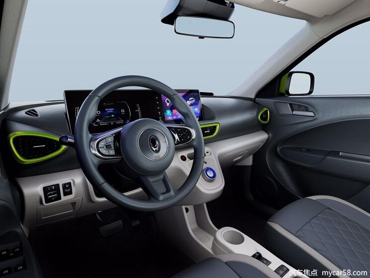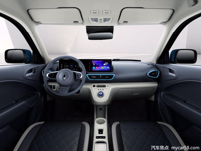 内饰方面,奇瑞eQ1多用撞色及圆形等元素,来向年轻人靠拢。中控、座椅等内饰配置同样采用双色搭配风格设计,整个空间显得活力十足。