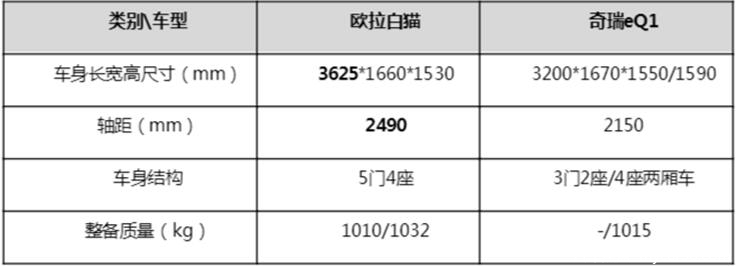 小结:在A00级汽车市场,两款车都主打萌宠理念,但比起欧拉白猫的圆润软萌猫系风格化设计,奇瑞eQ1少了一丝灵气。更重要的是,欧拉白猫的超长轴距带来的优越空间表现,简直不要太懂国人的心!