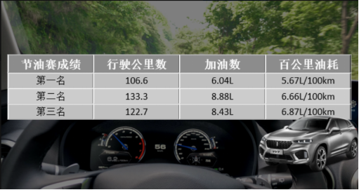 媒体老师们驾驶VV7经过长途试驾后,对该车的真实油耗有了重新认知,测试结果显示:挑战赛第一名的好成绩竟然低至5.67L/百公里,第二名为6.66L/百公里,第三名为6.87L/100km。13辆车的平均成绩为8.05L/百公里作为一款中型SUV,VV7的百公里综合油耗居然跨进8升俱乐部!